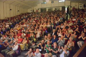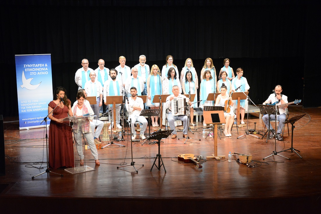 18 Mayıs 2018, Cuma akşamı Belediye Tiyatrosu’nda düzenlenen gecede konuşan Siniparksi başkanı Iva Frangou “Duygularımız ortak, acılarımız ortak. Aşırı sivri seslere karşı dik duracağız” derken, LMV Başkanı Ümit İşler de “Barış çabalarımızı Yunanistan’da aynı düşüncede olduğumuz dostlarımızla birlikte sürdüreceğiz.” Dedi. Eski Midilli Belediye Başkanı Stratis Pallis “Siniparksi’nin 20. Kuruluş yılında Türk-Yunan dostluğuna ivme kazandırmak istedik. Bizler arkadaş değil, kardeşiz.” Diye konuştu. Osman Özgüven de konuşmasında şunları söyledi. “Midilli’ye barış için geldik. Barış dün olduğu gibi bugün de gerekli. Barış için el ele vermeliyiz. Yaşasın kardeşlik, yaşasın barış. Zito İrini..