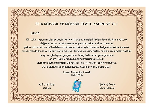 Lozan Mübadilleri Vakfı 2018 yılını Mübadil ve Mübadil Dostu Kadınlar Yılı olarak ilan etti.